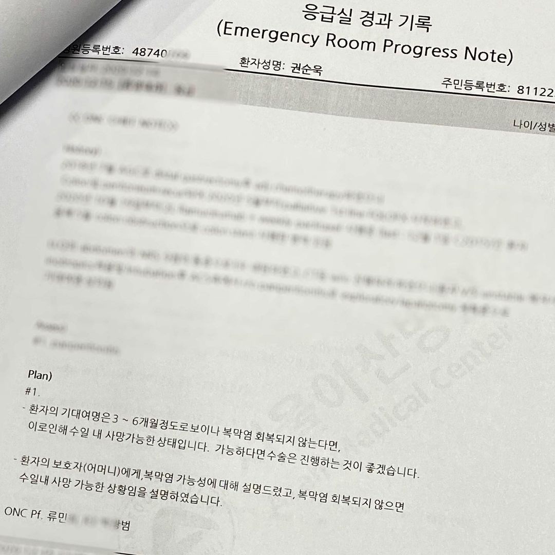 그런데 이제 정말 몸 상태가 너무 안 좋다는 걸 알게 되었고 현재 의학적으로는 시간이 그리 많이 남지 않았다고 한다고 적었다. 복막암 투병 소식으로 많은 이들의 걱정을. 보아의 친오빠 권순욱 감독이 향년 39세 나이로 사망했다.