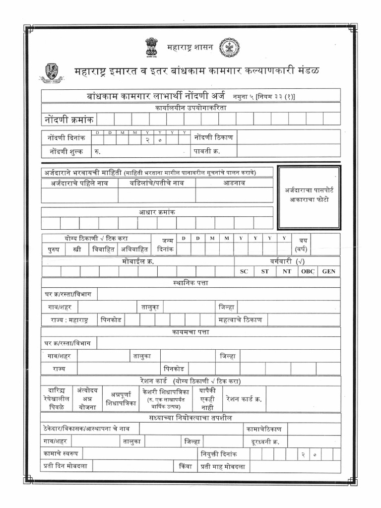 Bandhkam Kamgar Nondani Form Pdf Digital Dg