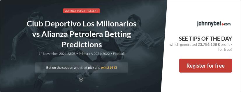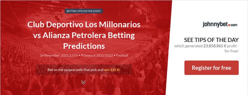 Millonarios vs Alianza Petrolera head to head record shows that of the recent 20 meetings theyve had Millonarios has won 11 times and Alianza Petrolera has won 6. Betting Tips Today is always up-to-date it provides mathematical football predictions generated by computer algorithm on the basis of statistics. Betting Insider Matches Tips Rankings Blog Bookmakers FAQ Odds format.