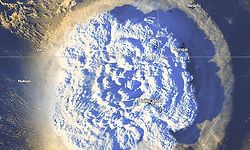 Before the eruption scientists had been closely monitoring the volcano after observing explosions thunder and lightning since Friday. The eruption of the Hunga Tonga-Hunga Haʻapai volcano was heard across the South Pacific reportedly as far as New Zealand and Australia. Explosive underwater volcano eruption in Tonga spotted from space in satellite images.